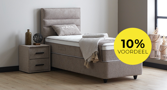 In onze webshop vind je een ruime collectie 1-persoons boxsprings met opbergruimte. Pas elk model aan aan jouw wensen. Kies het matras dat het beste bij jou past en de kleur die bij jouw slaapkamerinrichting aansluit. Bepaal de afmetingen en materialen van jouw 1-persoons bed met opbergruimte. Voeg een mooi hoofdbord of voetbord toe en jouw droombed is compleet! Bestel eenvoudig online of bezoek onze showroom aan de Zijldijk in Leiderdorp.