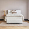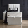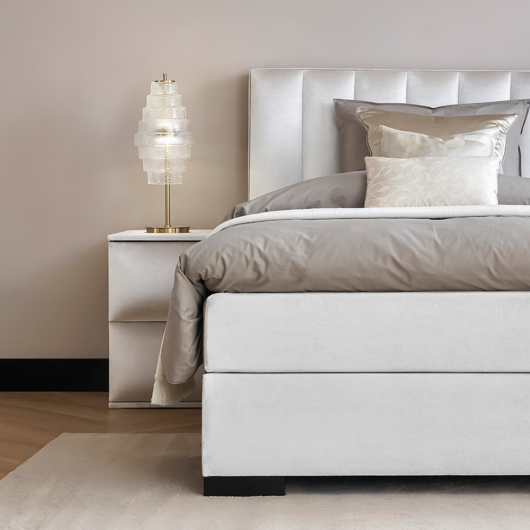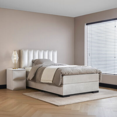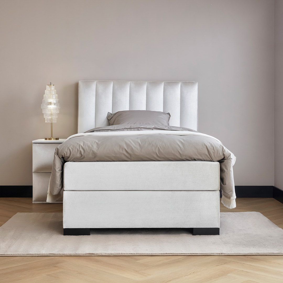 De standaard breedte van een bed is 90 cm. Zorg er voor dat je in ieder geval op je zij kunt liggen met je knieën gebogen of tel 40 cm op bij je schouderbreedte zodat je de juiste boxspringmaat kunt kiezen.