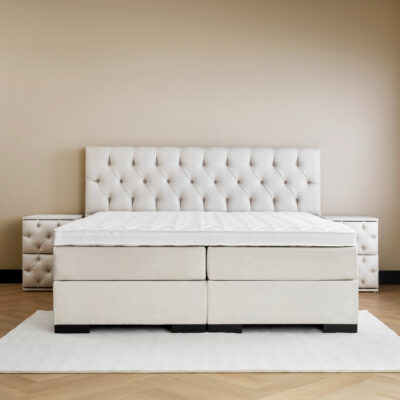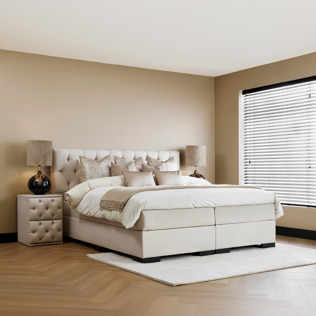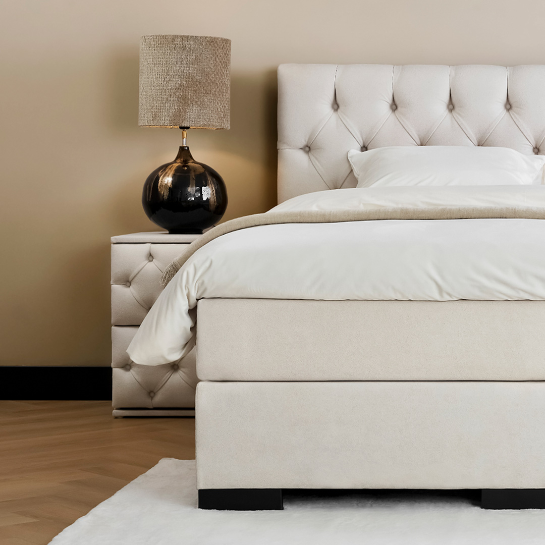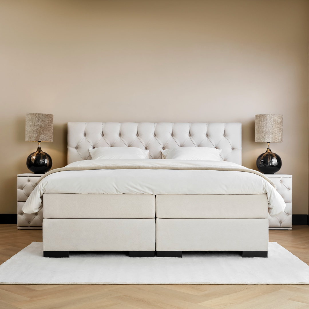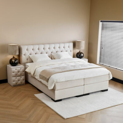 De boxspring Chester blinkt uit op de huidige markt door het luxueuze ontwerp. Kenmerkend aan deze boxspring is dat deze op maat speciaal voor u in Nederland word geproduceerd. Het grote voordeel hiervan zijn de vele opties die mogelijk zijn tijdens het samenstellen van uw boxspring. Dit uit zich in de vele keuzes qua maten, comfort en uitstraling. Ook de snelle levertijd is hier een groot voordeel van. Door nauw samen te werken met de leverancier van deze Chester boxspring kunnen wij u dan ook dit prachtige bed met een top kwaliteit aanbieden tegen een zeer aantrekkelijk prijs.