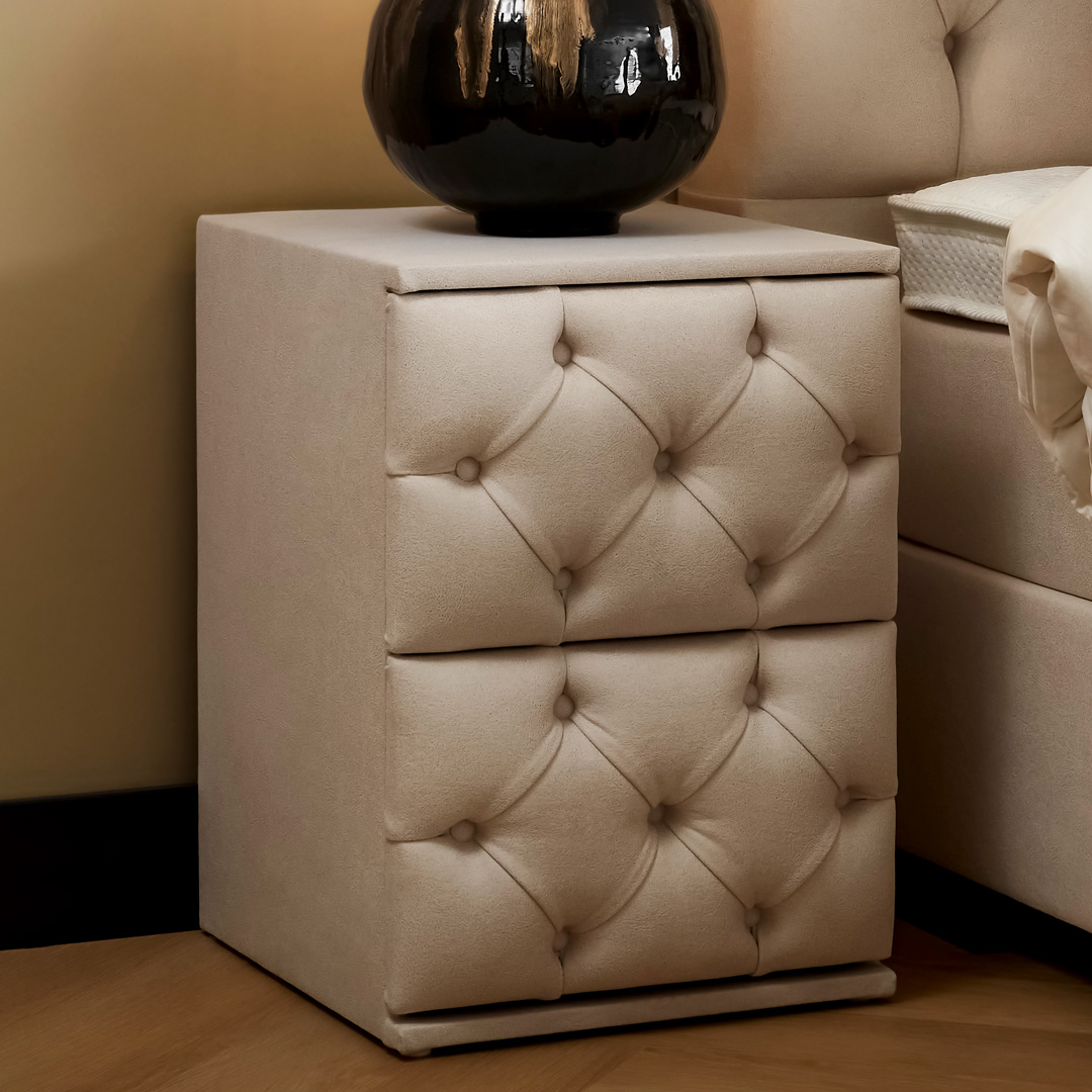 Dit zijn ca. 26 cm hoge harde boxen die mee gestoffeerd zijn in de luxueuze meubelstof. De hardboxen bevinden zich boven de 6 of 12cm hoge poten, dit biedt een makkelijke toegang voor het schoonmaken onder de boxspring. De boxen zijn gemaakt van hout wat extra verstevigd is op de 6 bevestigingspunten