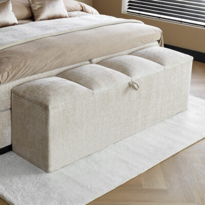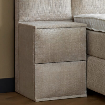 Dit zijn ca. 26 cm hoge harde boxen die mee gestoffeerd zijn in de luxueuze meubelstof. De hardboxen bevinden zich boven de 6 of 12cm hoge poten, dit biedt een makkelijke toegang voor het schoonmaken onder de boxspring. De boxen zijn gemaakt van hout wat extra verstevigd is op de 6 bevestigingspunten