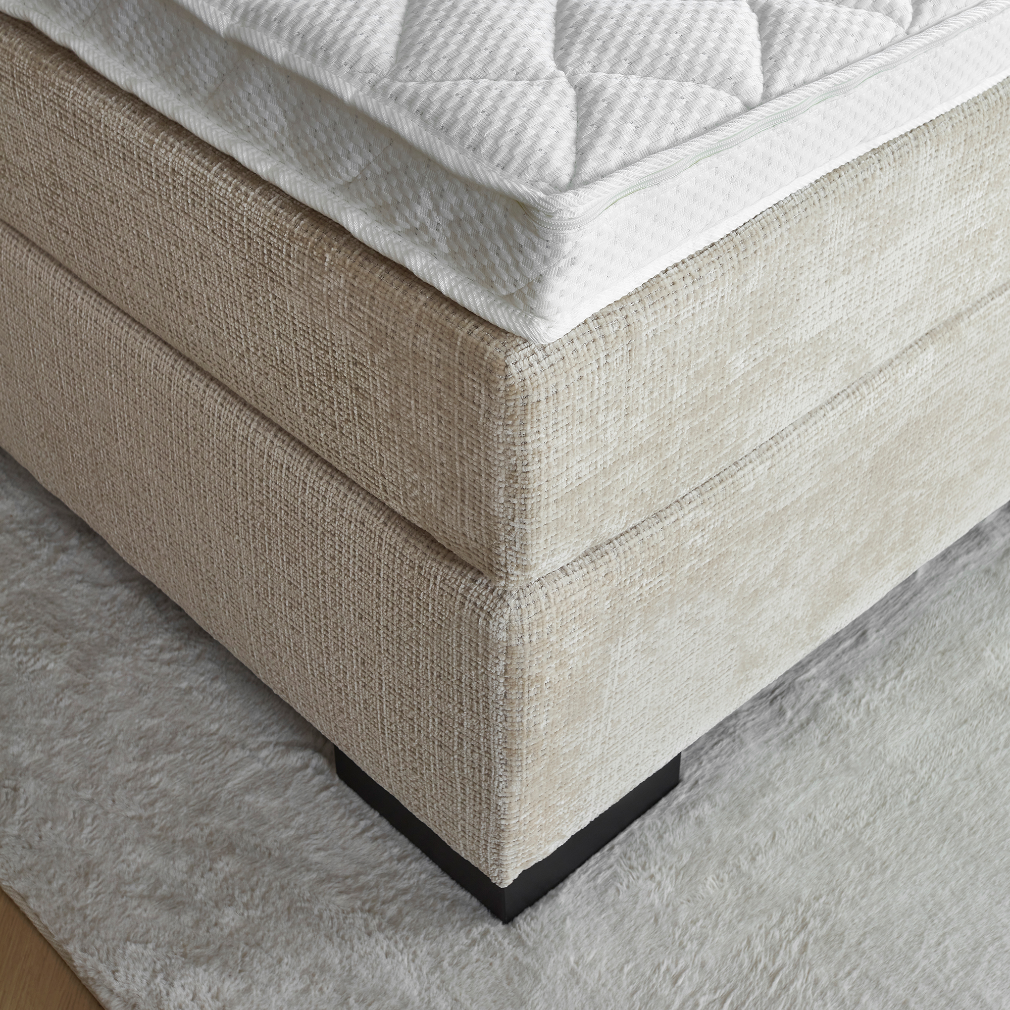 Met de keuze van de topper bepaald u hoe het bed aanvoelt. Door een combinatie te kiezen tussen het matras en de topper zorgt u er voor dat deze boxspring perfect aansluit op uw gewenste slaapcomfort. De volgende opties zijn mogelijk: