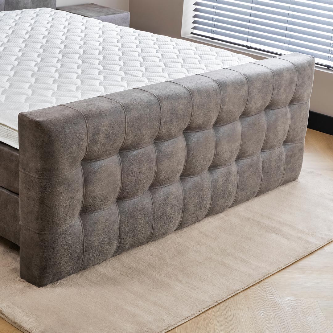 Dit zijn ca. 30 cm hoge pocket verende boxen die mee gestoffeerd zijn in de luxueuze meubelstof. De pocket boxen bevinden zich boven de 6 of 12 cm hoge poten, dit biedt een makkelijke toegang voor het schoonmaken onder de boxen. De boxen zijn gemaakt van een houten frame wat extra verstevigd is op de 6 bevestigingspunten. Door de pocket verende kern van deze boxen is dit een uitstekend ventilerende bedbodem.