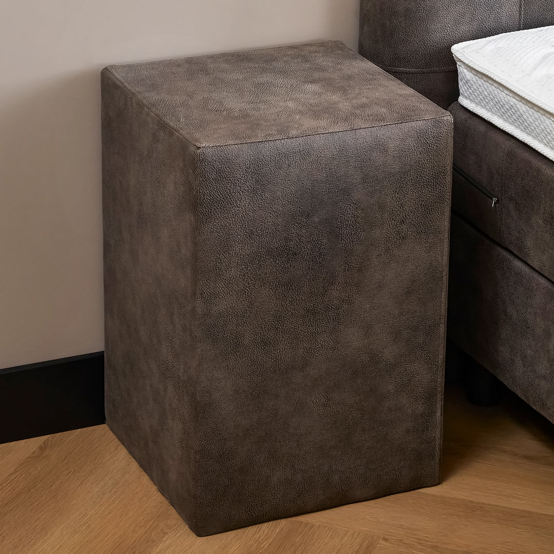 Dit zijn ca. 26 cm hoge harde boxen die mee gestoffeerd zijn in de luxueuze meubelstof. De hardboxen bevinden zich boven de 6 of 12cm hoge poten, dit biedt een makkelijke toegang voor het schoonmaken onder de boxspring. De boxen zijn gemaakt van hout wat extra verstevigd is op de 6 bevestigingspunten