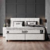 Dit zijn ca. 30 cm hoge pocket verende boxen die mee gestoffeerd zijn in de luxueuze meubelstof. De pocket boxen bevinden zich boven de 6 of 12 cm hoge poten, dit biedt een makkelijke toegang voor het schoonmaken onder de boxen. De boxen zijn gemaakt van een houten frame wat extra verstevigd is op de 6 bevestigingspunten. Door de pocket verende kern van deze boxen is dit een uitstekend ventilerende bedbodem.