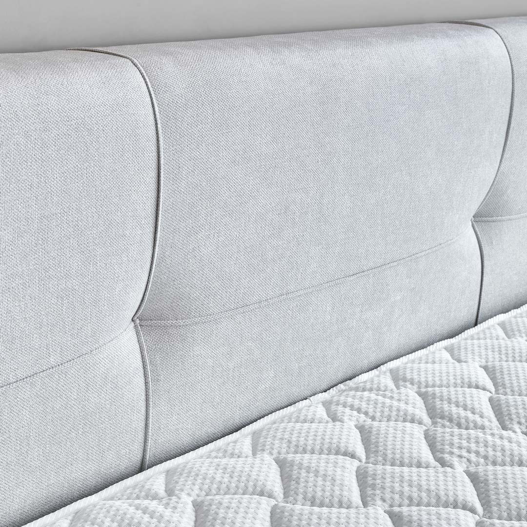 Het prachtige afgewerkte hoofdbord van de Helsinki Sandra bestaat uit een tijdloos en strak model. Het hoofdbord is ca. 20 cm breder dan de breedte van het bed. De hoogte van het hoofdbord is 115 cm hoog. Door de horizontale en verticale stiknaden op het hoofdbord ontstaat er een speels effect en een vakverdeling. Dit geeft dit model een sfeervolle en elegante uitstraling voor in ieder slaapkamerinterieur. Dit alles is gestoffeerd in de door u gewenste luxueuze meubelstof.