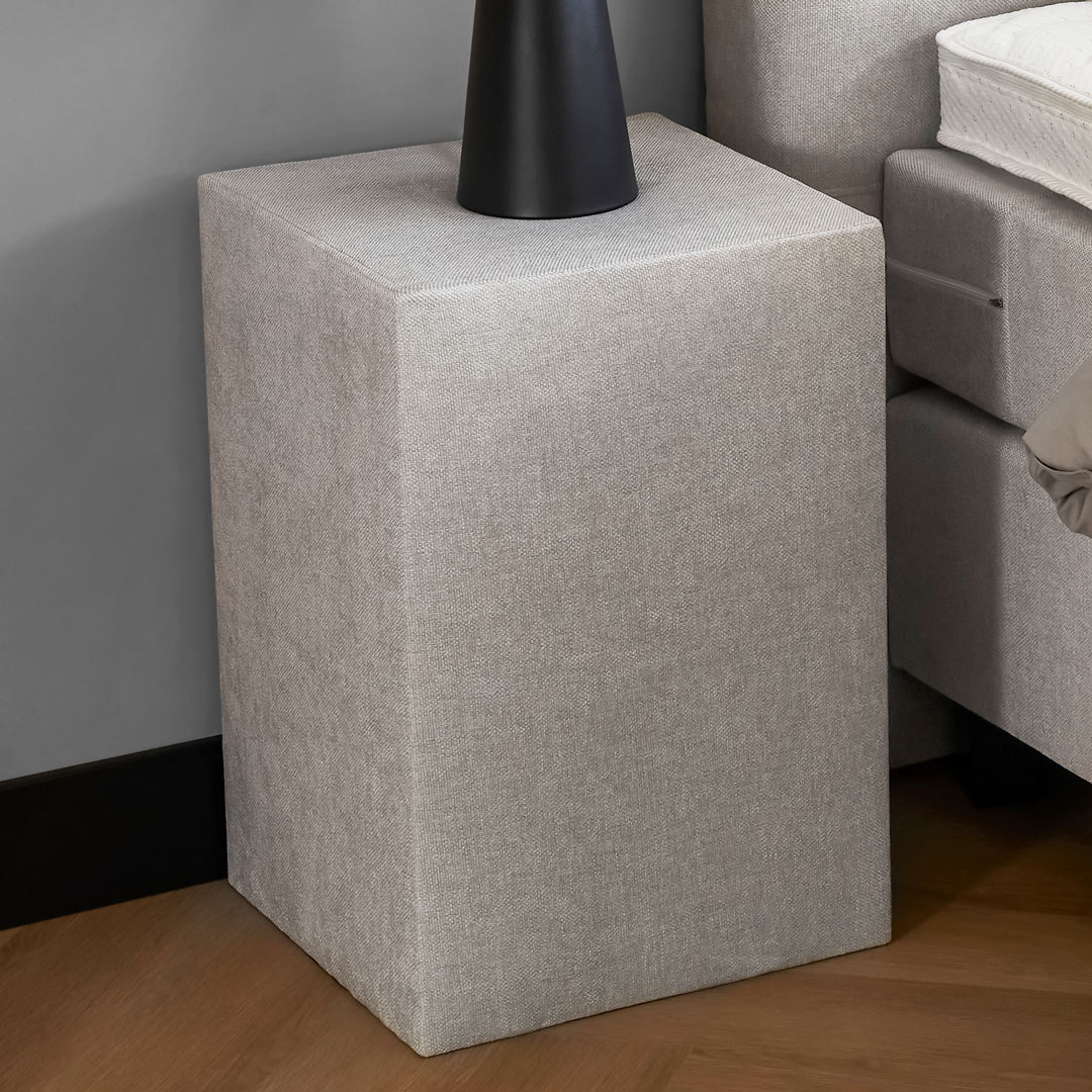 Dit zijn ca. 26 cm hoge harde boxen die mee gestoffeerd zijn in de luxueuze meubelstof. De hardboxen bevinden zich boven de 6 of 12cm hoge poten, dit biedt een makkelijke toegang voor het schoonmaken onder de boxspring. De boxen zijn gemaakt van hout wat extra verstevigd is op de 6 bevestigingspunten