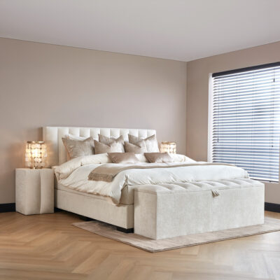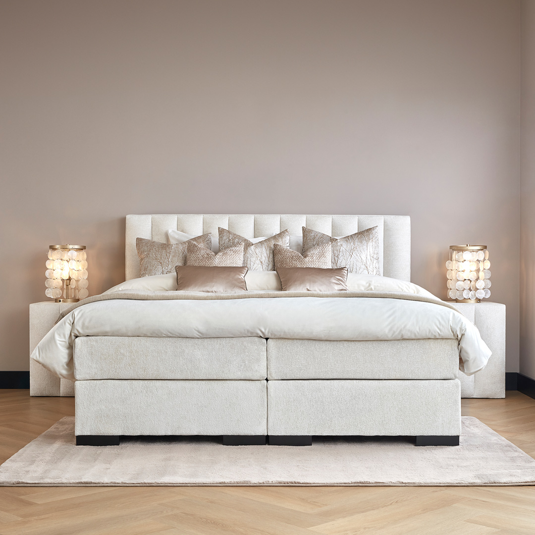 De boxspring Teddy blinkt uit op de huidige markt door het luxueuze ontwerp. Kenmerkend aan deze boxspring is dat deze op maat speciaal voor u in Nederland word geproduceerd. Het grote voordeel hiervan zijn de vele opties die mogelijk zijn tijdens het samenstellen van uw boxspring. Dit uit zich in de vele keuzes qua maten, comfort en uitstraling. Ook de snelle levertijd is hier een groot voordeel van. Door nauw samen te werken met de leverancier van deze Teddy boxspring kunnen wij u dan ook dit prachtige bed met een top kwaliteit aanbieden tegen een zeer aantrekkelijk prijs.