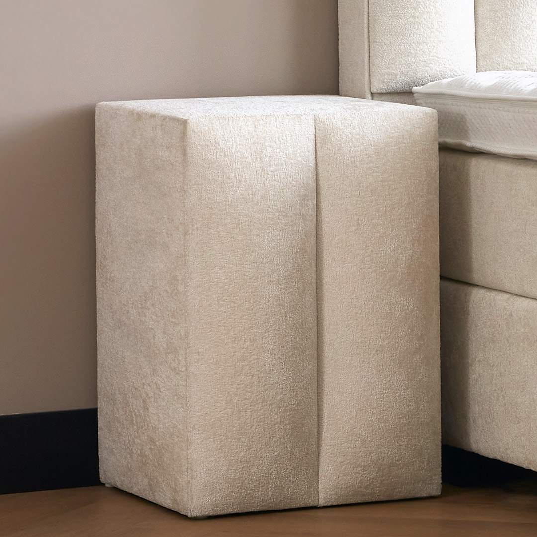 Dit zijn ca. 26 cm hoge harde boxen die mee gestoffeerd zijn in de luxueuze meubelstof. De hardboxen bevinden zich boven de 6 of 12cm hoge poten, dit biedt een makkelijke toegang voor het schoonmaken onder de boxspring. De boxen zijn gemaakt van hout wat extra verstevigd is op de 6 bevestigingspunten