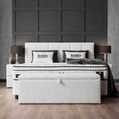 Het opbergbed Teddy is een modern en stijlvol bed met een uniek design hoofdbord die ook een elegante uitstraling heeft. Het hoofdbord van het bed heeft een strak ontwerp met een zachte stoffering. Het design van het hoofdbord is zorgvuldig gekozen om het bed een chique en eigentijdse uitstraling te geven. Het bed wordt geleverd met een luxe matras dat zeer comfortabel is om op te slapen. Het matras is gemaakt van hoogwaardig materiaal en biedt uitstekende ondersteuning aan het lichaam. Al met al is het opbergbed Teddy een perfecte combinatie van stijl en functionaliteit, waardoor het een geweldige keuze is voor mensen die op zoek zijn naar een modern en praktisch bed.