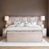 Het opbergbed Teddy is een modern en stijlvol bed met een uniek design hoofdbord die ook een elegante uitstraling heeft. Het hoofdbord van het bed heeft een strak ontwerp met een zachte stoffering. Deze look geeft een fraaie, levendige uitstraling aan ieder slaapkamerinterieur. Dit hoofdbord is ca. 3 cm breder dan de gekozen bed maat en ca. 120 cm hoog. Het hoofdbord bestaat uit 1 deel.