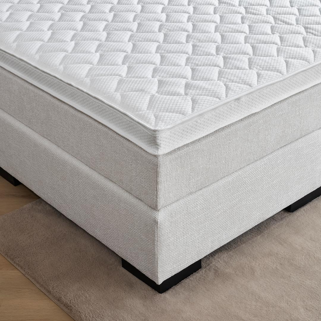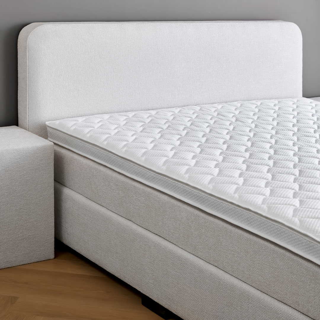 Veerkrachtig schuim dat goed ventileerd zonder de micro-pocketveren en afgewerkt met een frisse dubbeldoek bamboe tijk. Deze topper is stevig.