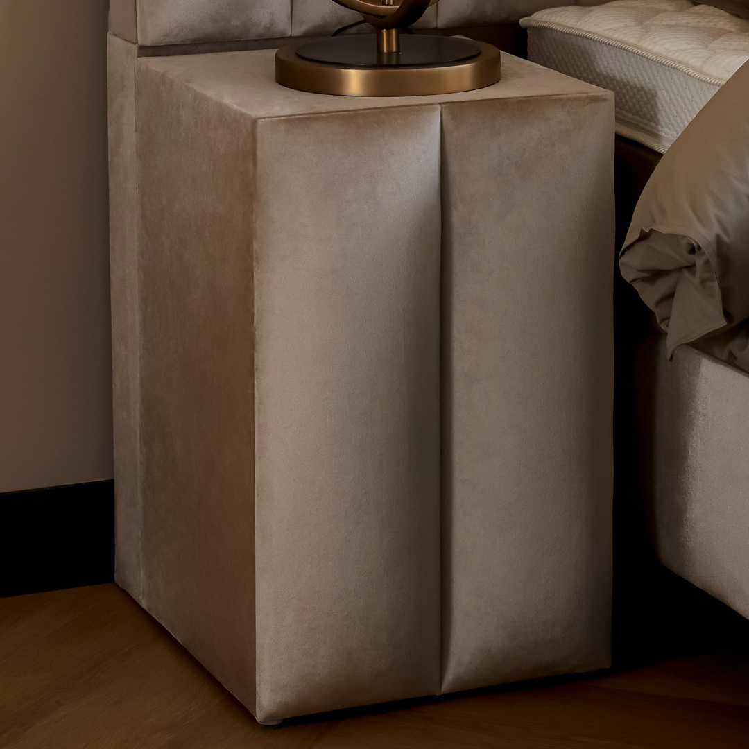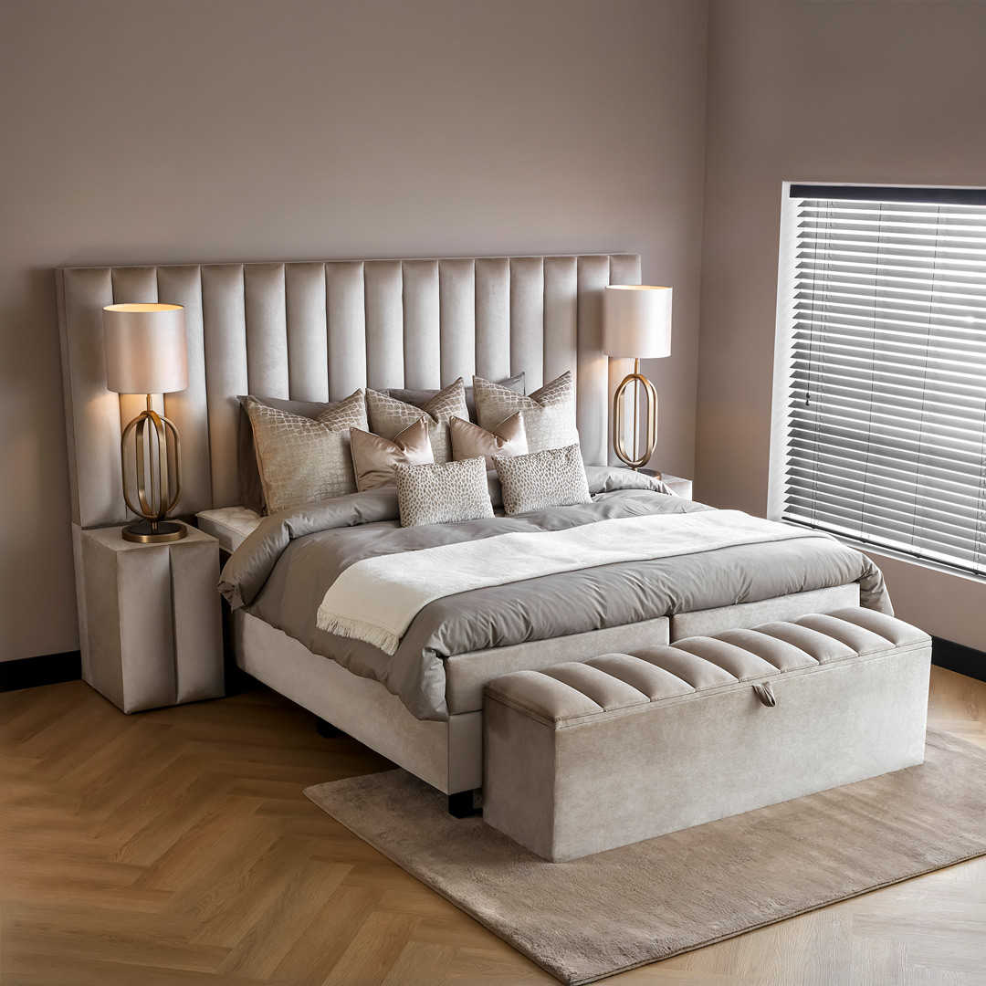 Dit zijn ca. 26 cm hoge harde boxen die mee gestoffeerd zijn in de luxueuze meubelstof. De hardboxen bevinden zich boven de 6 of 12cm hoge poten, dit biedt een makkelijke toegang voor het schoonmaken onder de boxspring. De boxen zijn gemaakt van hout wat extra verstevigd is op de 6 bevestigingspunten