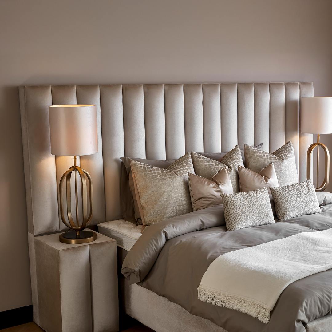 Het prachtige afgewerkte hoofdbord van de Keijzer Marcus bestaat uit een tijdloos en strak model. Het hoofdbord is ca. 90 cm breder dan de breedte van het bed. De hoogte van het hoofdbord is afhankelijk van de door u gekozen opstelling. Door het luxe design met de langwerpige verticale blokken geeft dit hoofdbord een sfeervolle en elegante uitstraling aan ieder slaapkamerinterieur. Dit alles is gestoffeerd in de door u gewenste luxueuze meubelstof.