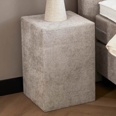Dit zijn ca. 26 cm hoge harde boxen die mee gestoffeerd zijn in de luxueuze meubelstof. De hardboxen bevinden zich boven de 6 of 12cm hoge poten, dit biedt een makkelijke toegang voor het schoonmaken onder de boxspring. De boxen zijn gemaakt van hout wat extra verstevigd is op de 6 bevestigingspunten