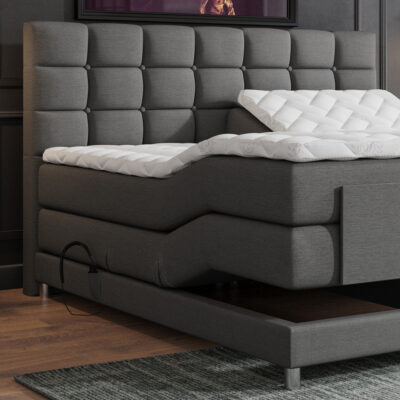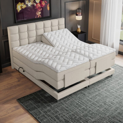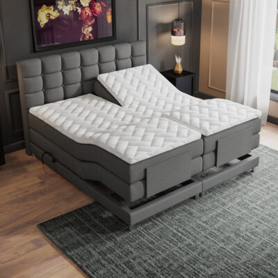 De boxspring wordt geleverd inclusief ca. 16 cm pocket boxen die mee gestoffeerd zijn in de luxueuze meubelstof. De pocketboxen bevinden zich boven het ca. 14 cm frame welke ook mee gestoffeerd is. Het frame rust op 4 elegante zilverkleurige poten van 7 cm hoog en is gemaakt van hout wat extra verstevigd is op 9 bevestigingspunten. Heeft u vanwege medische redenen een specifieke slaaphouding nodig? Leest u graag een goed boek of kijkt u bijvoorbeeld veel televisie in bed? Met deze elektrisch verstelbare boxspring creëert u snel meerdere zit- en ligstanden.
