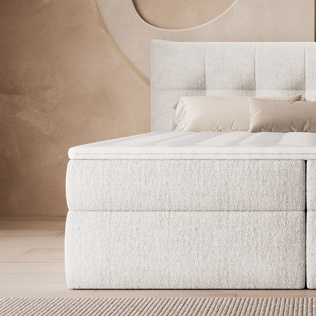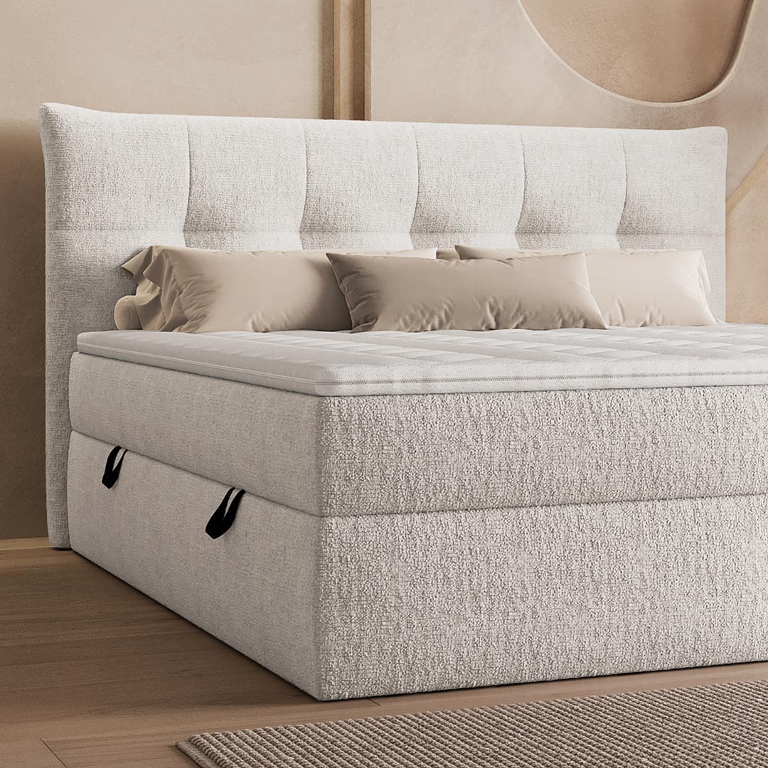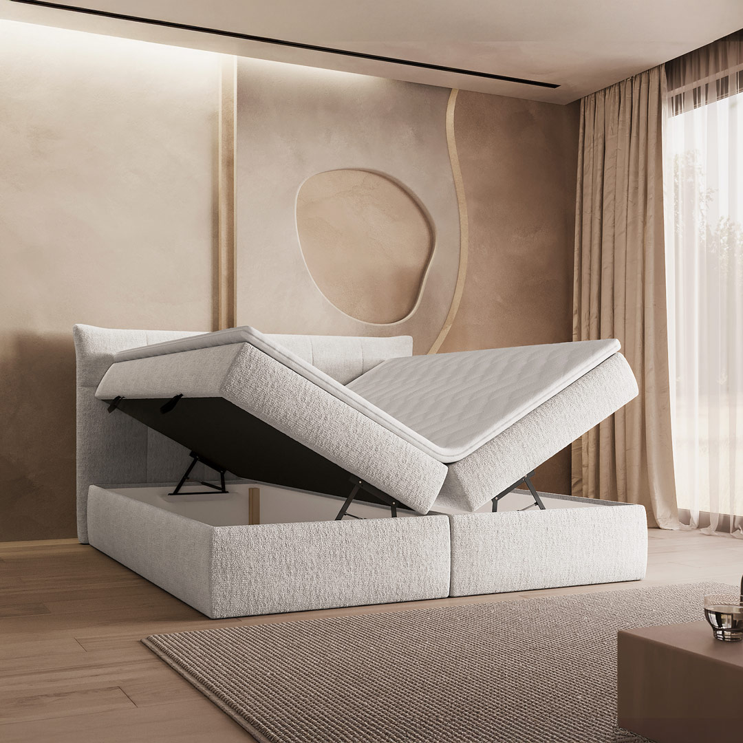 De matrassen van ca. 18 cm dik zijn voorzien van een 5-slags binnenvering. Deze is afgewerkt met een comfort schuim en mee gestoffeerd in de luxueuze meubelstof. Dit opbergbed beschikt over 2 matrassen die aan beide kanten van het bed te openen zijn. De hardheid van deze matrassen is medium stevig, dit kan niet worden aangepast. De matrassen zijn belastbaar tot 100 kg.