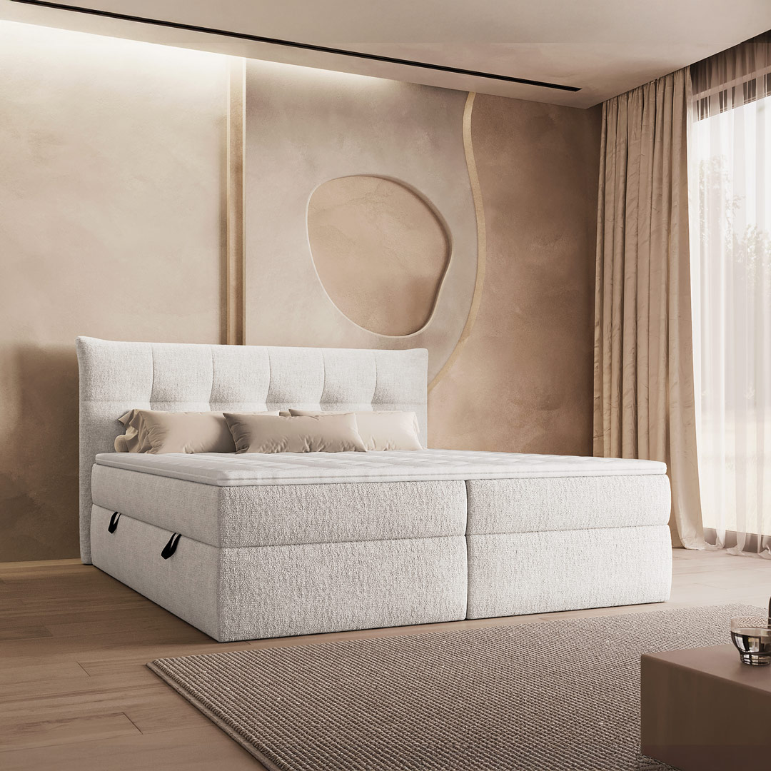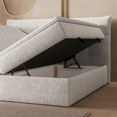 Het model Claudio heeft 2 opbergboxen die vanaf het zijkant geopend kunnen worden. Door de handige opbergruimte die zich onder het gehele oppervlakte van het matras bevind kunt u bijna alle gewenste spullen op een nette en handige manier opruimen. Bestaande uit een volledig metalen frame gestoffeerd in een luxe meubelstof is dit de ultieme samenwerking tussen stevigheid en uitstraling. Door de veren die hulp bieden bij het openen van de boxen is de enorme opbergruimte die dit bed bied extra makkelijk te bereiken.