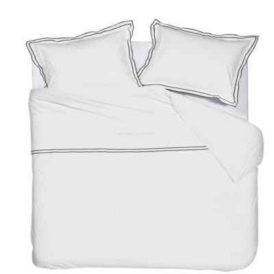 De bijbehorende kussenslopen zijn rondom afgewerkt met een dubbele oxfordrand, wat zorgt voor een luxueuze look. De fijne overlocksteek in dezelfde zwarte kleur benadrukt het vakmanschap en komt ook terug in de rand van het dekbedovertrek. Dit zorgt voor een harmonieuze en verfijnde uitstraling.