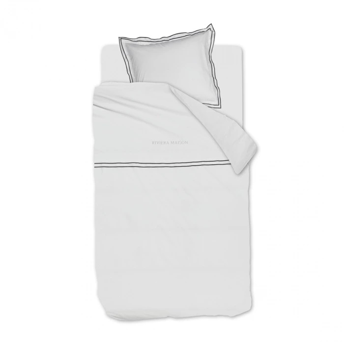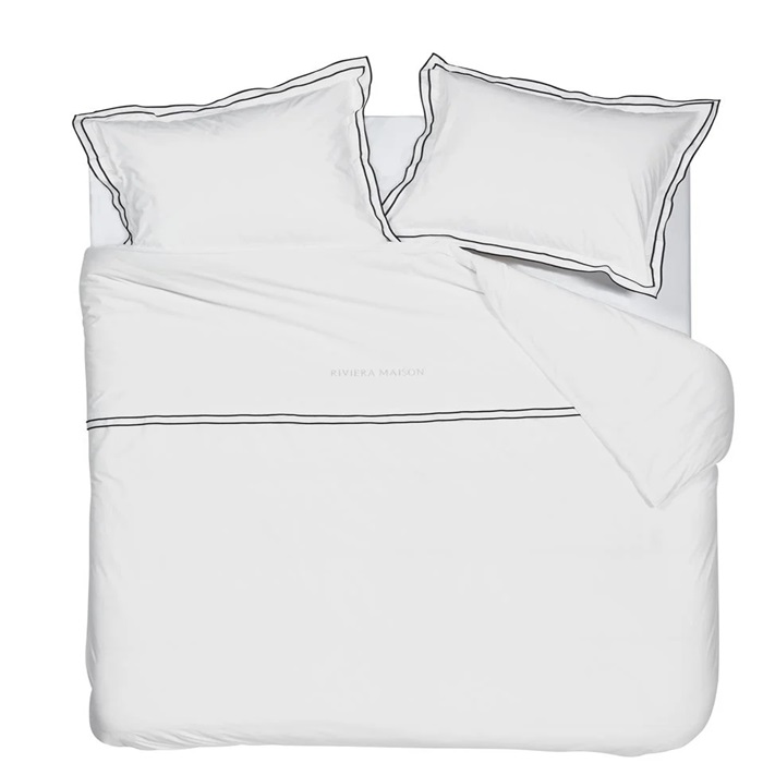 Het Salute dekbedovertrek is uitgevoerd in een elegante, tijdloze witte kleur en wordt verfraaid met een subtiele zwartkleurige borduring, waarop de iconische tekst “Rivièra Maison” staat geborduurd. Deze stijlvolle details geven je slaapkamer direct een exclusieve en serene uitstraling.